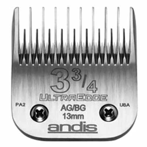 Andis UltraEdge Blades provide your pet a professional looking cut in the convenience of your own home. Andis’ exclusive carburized hardening process creates the longest lasting, smoothest, steel cutting blades on the pet grooming market. Special chrome finish reduces corrosion and helps maintain an optimum cutting performance. Detachable blades save you money with their versatile ability to fit a number of electric clippers, including AG, AGC, AGR, and Pro Animal Clippers, as well as Oster A-5 clippers.