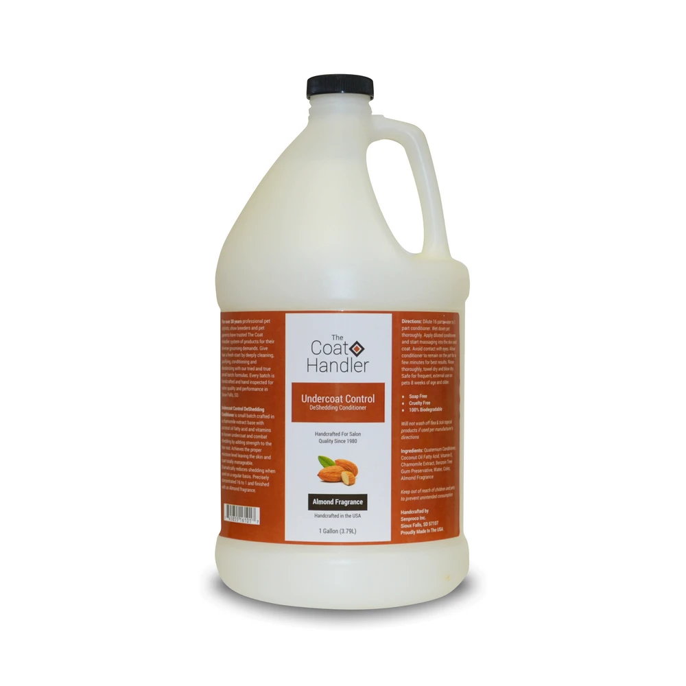 mild & highly concentrated formula specifically designed with vitamins to help reduce shedding on all coats.Compare to Furminator DeShedding SolutionUSE FORReducing shedding on all coats & enhancing hair follicle strengthFRAGRANCEAlmondDILUTION RATIO16:1″Undercoat Control Conditioner is a pure mild & highly concentrated formula specifically designed with vitamins to help reduce shedding on all coats.Compare to Furminator DeShedding SolutionUSE FORReducing shedding on all coats & enhancing hair follicle strengthFRAGRANCEAlmondDILUTION RATIO16:1″