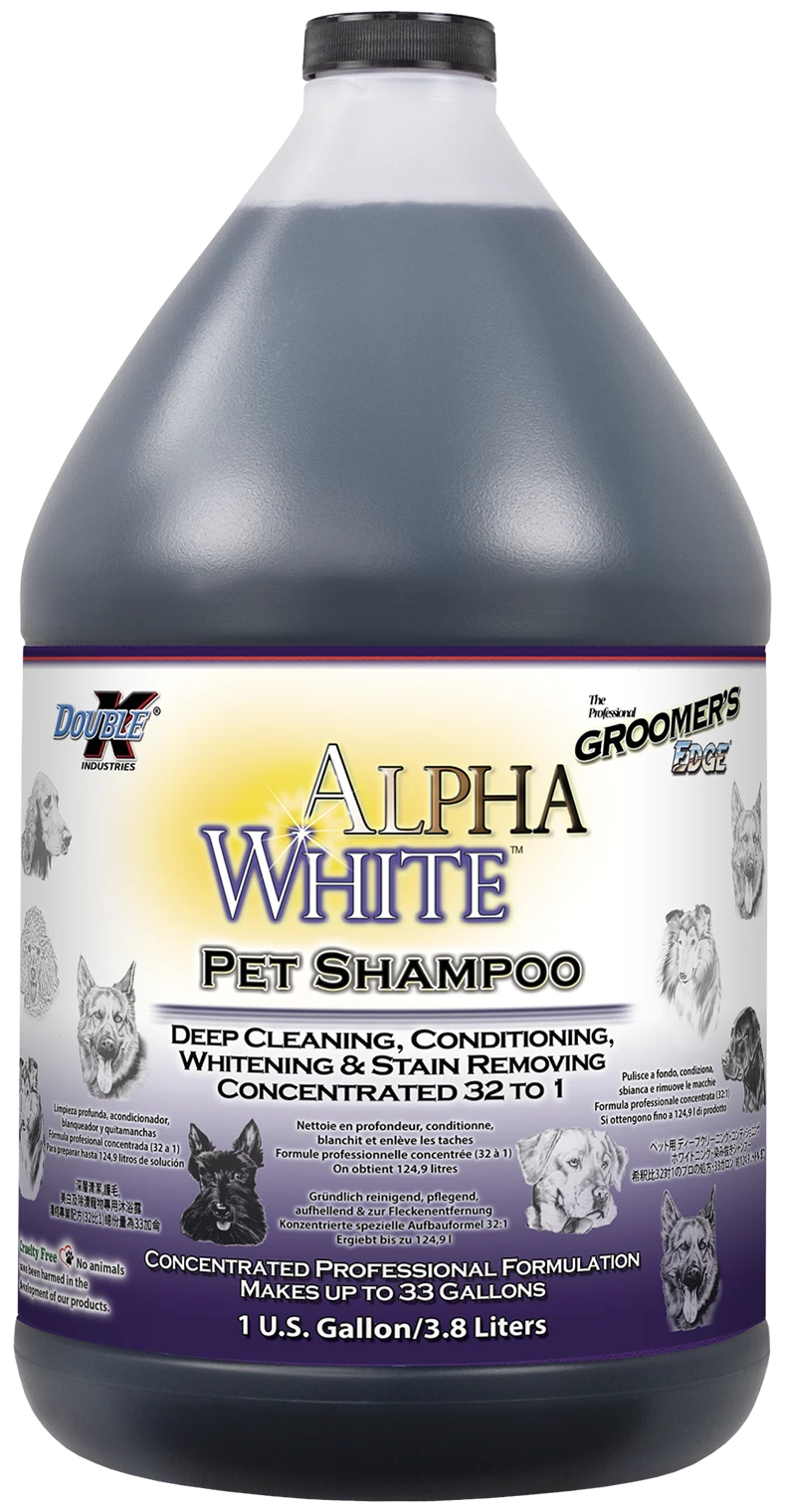 The perfect choice for deep, thourough yet gentle cleaning of pets with white coats or markings. Removes stains and yellowing while it deodorizes. Leaves hair lustrous and shiny. The long-lasting formula may be used regularly for beautiful show ring results. Highly concentrated for economic use.