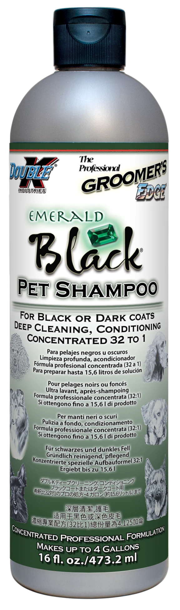 All natural pet shampoo that cleans, conditions and enriches black or dark coats. Helps eliminate sun fading, red tones and brassiness. Leaves hair lustrous, shiny and deodorized. Highly concentrated for economic use.