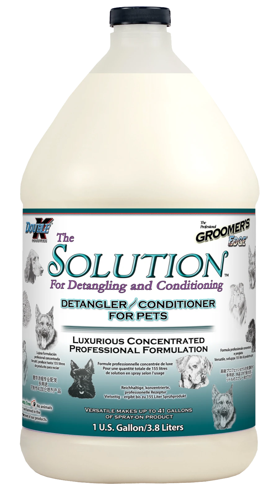 THE SOLUTION FOR DETANGLING AND CONDITIONING is a high quality, highly effective product for grooming and is shipped in a concentrated formula that may be diluted at a ratio of up to 40 parts water to 1 part solution.The most effective way to dilute The Solution is to add it to a container that already contains water, and is only 2/3 full. This will provide an excellent environment to ensure that as the product is shaken or mixed it will dilute sufficiently.