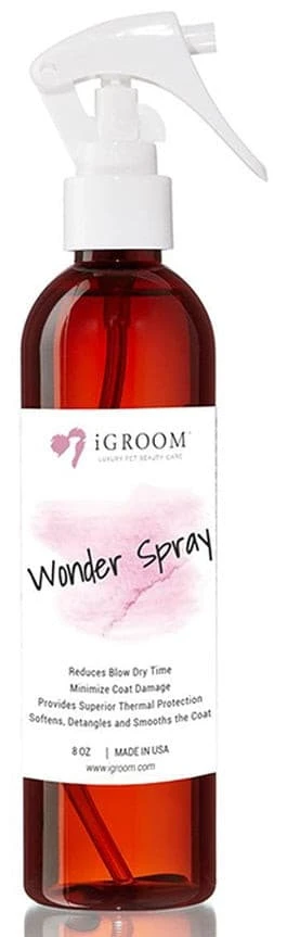 iGroom Wonder Spray is a multifunctional spray that is specifically formulated to reduces blow-drying time with the additional benefits of thermal protection and humidity resistance.