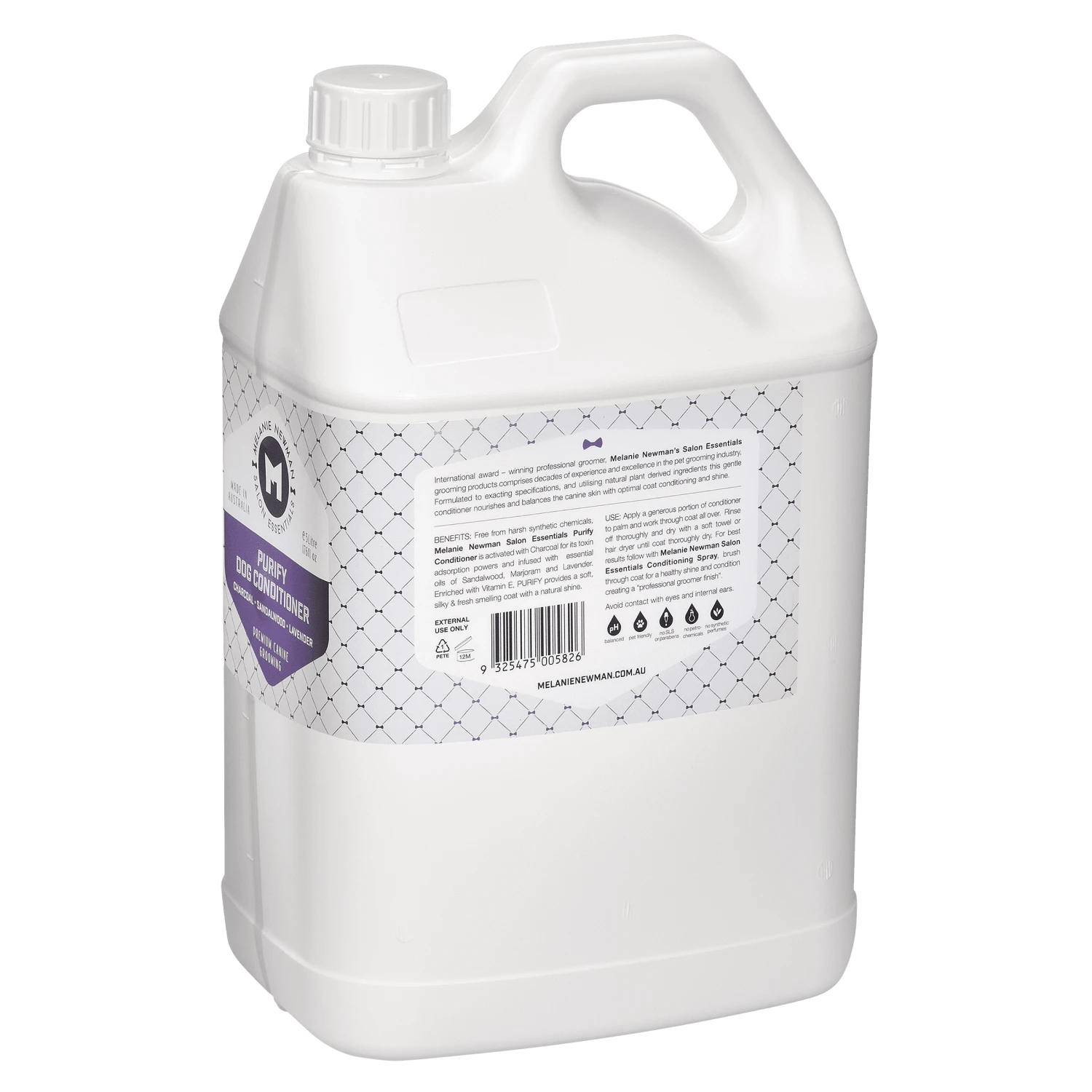 Benefits: Free from harsh synthetic chemicals, Melanie Newman Salon Essentials Purify Conditioner is activated with Charcoal for its toxin adsorption powers and infused with essential oils of Sandalwood, Marjoram and Lavender. Enriched with Vitamin E, PURIFY provides a soft, silky & fresh smelling coat with a natural shine.
