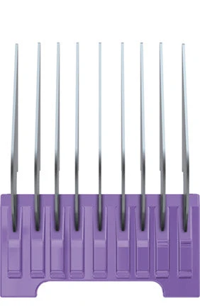 Universal, self-adjusting, snap-on combs. Stainless steel combs glide through coats easily and efficiently for a smooth coat finish. Smooth tip mean snag-free grooming and the (4) sided security fit practically eliminates the worry of grooming mistakes.Sold individually or in a set. The comb set contains (8) sizes. Each comb is color-coded for easy visual reference. Includes storage stand.Sizes: 1/8”, 1/4”, 3/8”, 1/2”, 5/8”, 3/4”, 7/8”, 1”.***PLEASE NOT – THE “5 N 1” COMB SET WILL ONLY FIT BLADES FOR WAHL CHROMADO, BRAVURA & MOSER ARCO CLIPPERS***
