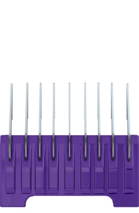 Universal, self-adjusting, snap-on combs. Stainless steel combs glide through coats easily and efficiently for a smooth coat finish. Smooth tip mean snag-free grooming and the (4) sided security fit practically eliminates the worry of grooming mistakes.Sold individually or in a set. The comb set contains (8) sizes. Each comb is color-coded for easy visual reference. Includes storage stand.Sizes: 1/8”, 1/4”, 3/8”, 1/2”, 5/8”, 3/4”, 7/8”, 1”.***PLEASE NOT – THE “5 N 1” COMB SET WILL ONLY FIT BLADES FOR WAHL CHROMADO, BRAVURA & MOSER ARCO CLIPPERS***